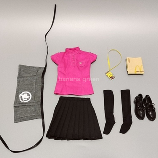 DMTOYS 맥도날드 유니폼 셔츠 치마 스커트 1/6 여성 피규어 의상세트
